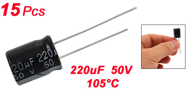 15 x 220uF 50V 105C Radial Electrolytic Capacitor 10x13mm