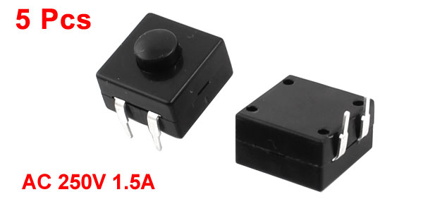 Main Color Black Product Name Torch Push Button Switch Overall Size 12 x 12 x 9mm/ 0.47" x 0.47" x 0.35" (L*W*H) Rated AC 250V 1.5A Net Weight 7g Action Type Latching Country of Manufacture CHINA Package Content 5 Pcs x Torch Push Button Switch Button Diameter 5mm Material Plastioc, Metal Contact Type SPST Pin Number 2 - Reviews