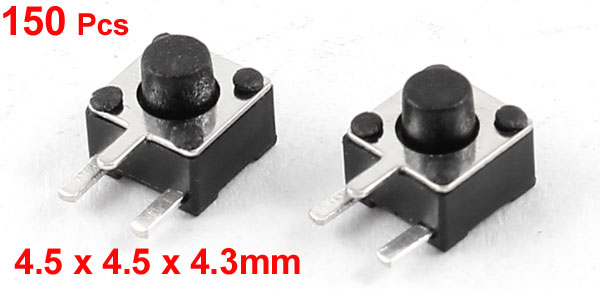 150 Pcs 4.5mmx4.5mmx4.3mm 3 Pin Momentary Tactile Tact Push Button Switch