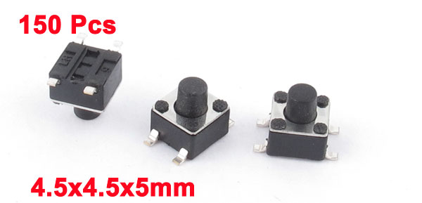150 Pcs SMD 4 Pin Momentary Push Button Tactile Tact Switches 4.5x4.5x5mm