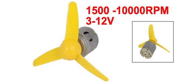 Product Name DC Motor Rated Voltage DC 3-12V Speed 1500 -10000RPM Mounting Hole Diameter 1.5mm/0.06" Propeller Lenght 6cm/2.4" Shaft Size 2 x 6mm/ 0.08" x 0.24"(D*L) Motor Size 30.5 x 24mm/ 1.2" x 0.9" (L*D) Main Color Silver Tone, Yellow Material Metal, Plastic Net Weight 30g Package 1 x DC Motor w Propeller - Reviews