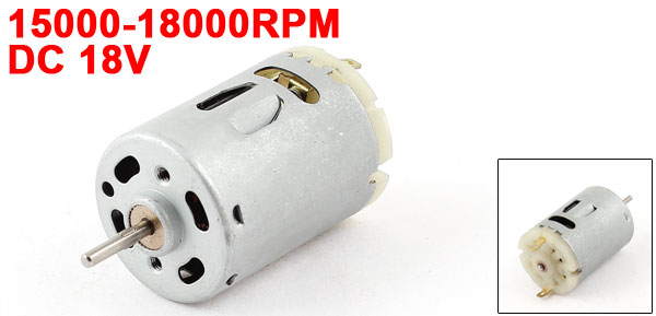 Product Name DC Motor Model 800 Use Voltage DC6-24V Rated Voltage DC 18V No-load Speed 15000-18000RPM Shaft Dia 2.3mm/0.09" Body Size 38 x 27 mm / 1.5" x 1" (L*D) Total Length 57 mm / 2.24" Main Color Gray Material Metal, Plastic Weight 63g Package 1 x DC Motor  - Reviews