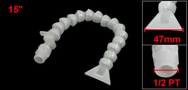 15" Long 1/2" Thread Flat Nozzle Flexible Plastic Water Oil Coolant Pipe Clear