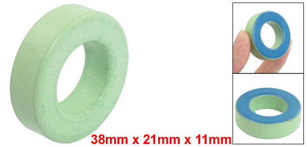 Product Name Ferrite Core Material Iron Color Pale Green, Blue Overall Size 38 x 21 x 11mm/ 1.5" x 0.8" x 0.4"(Outside Dia.*Inner Dia.*T) Net Weight 62g Package Content 1 x Toroid Ferrite Core - Reviews