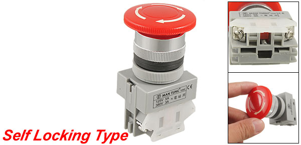 Product Name Push Button Switch Type Rotary Self Locking Type Voltage& Current AC 125V, 5A AC 380V, 3A Terminals Number 2 Contact Type 1 NC(Normally Close) Mount Hole Diameter 24mm / 0.9" Fit Panel Thickness(Adjustable) Max 5mm / 0.2" Button Diameter 38mm/1.5'' Total Size 37 x 29 x 70mm/1.5'' x 1.1'' x 2.8'' (L*W*H) Main Material Plastic, Metal Main Color Red, Gray Weight 40g Package Content 1 x Push Button Switch - Reviews