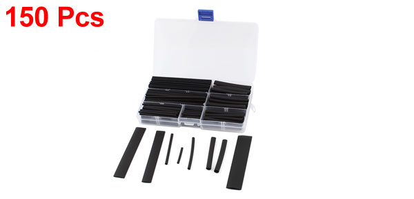 150Pcs 2:1 Heat Shrink Wrap Wire Assortment Kit Tube Black 8 Sizes