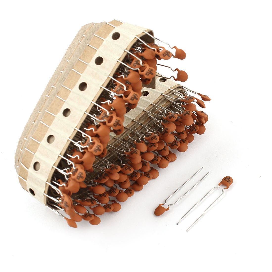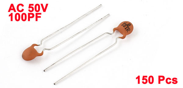 Product Name Ceramic Disc Capacitors Rated Voltage AC 50V Capacitance 100PF Body Size 5 x 2mm/ 0.19" x 0.08" (D*T) Lead Space 4.5m/ 0.18" Lead Length 25mm/ 1" Main Color Brick Red, Silver Tone Weight 47g Package Content 150 (±2%) Pcs x Ceramic Disc Capacitors - Reviews