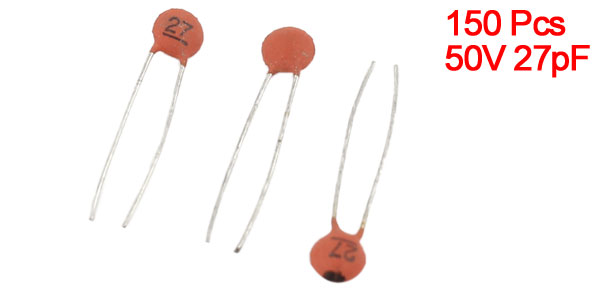 Product Name Ceramic Disc Capacitors Voltage 50V Capacitance 27pF Capacitance Tolerance ±20% Body Size 4 x 2mm/0.16" x 0.08"(D*T) Lead Space 2mm/0.08" Lead Length 15mm/0.59" Main Color Brown, Silver Tone Weight 9g Package Content 150(±2%) x Ceramic Disc Capacitors - Reviews