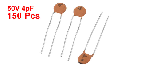 Product Name Ceramic Disc Capacitors Voltage 50V Capacitance 4pF Capacitance Tolerance ±20% Body Size 4 x 2mm/0.16" x 0.08"(D*T) Lead Space 3mm/0.12" Lead Length 16mm/0.63" Main Color Brown, Silver Tone Weight 9g Package Content 150(±2%) x Ceramic Disc Capacitors - Reviews