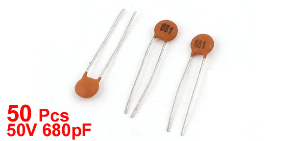 Product Name Ceramic Disc Capacitors Voltage 50V Capacitance 680pF Capacitance Tolerance ±20% Body Size 4 x 2mm/0.16" x 0.08"(D*T) Lead Space 2mm/0.08" Lead Length 15mm/0.59" Main Color Brown, Silver Tone Weight 8g Package Content 150(±2%) x Ceramic Disc Capacitors - Reviews