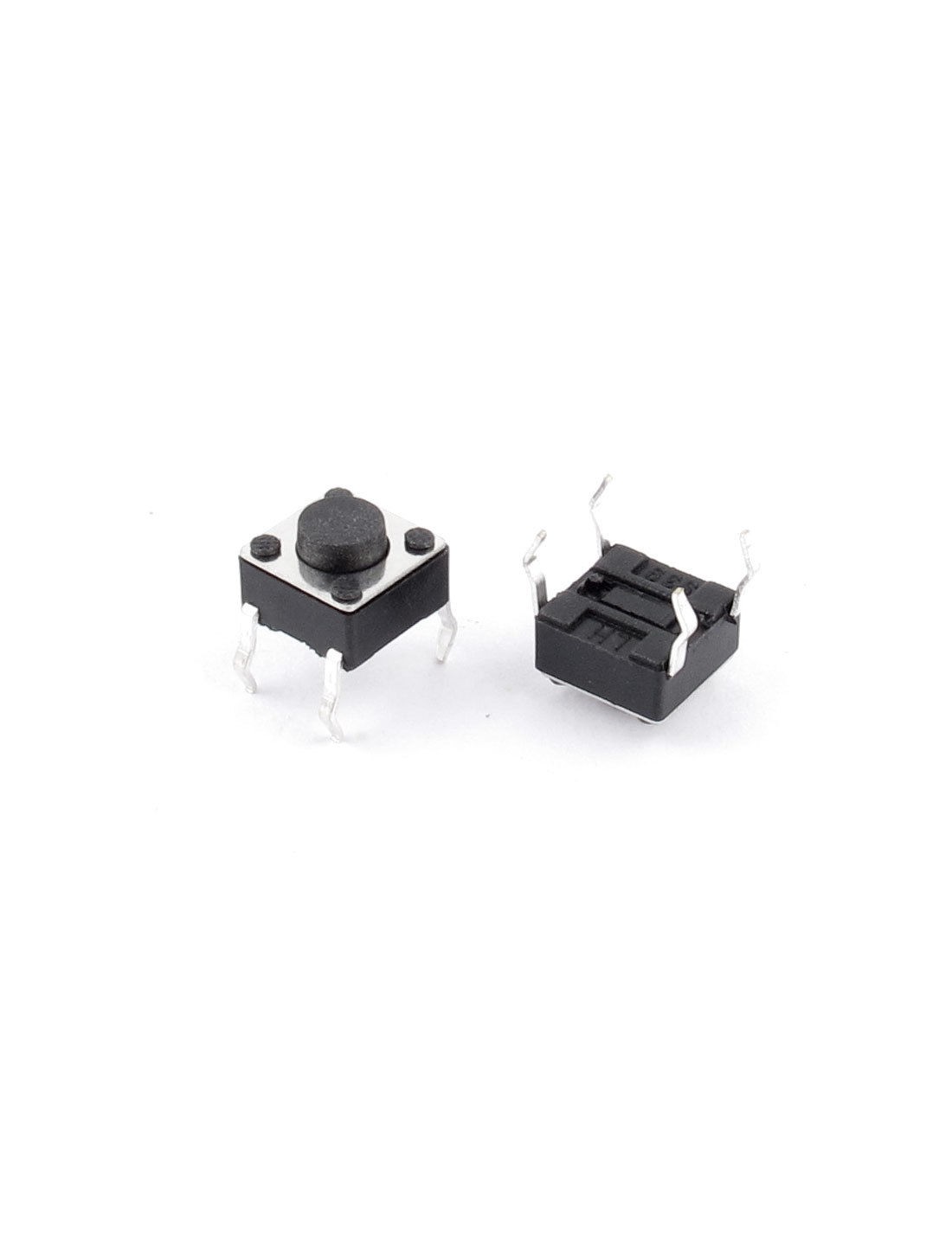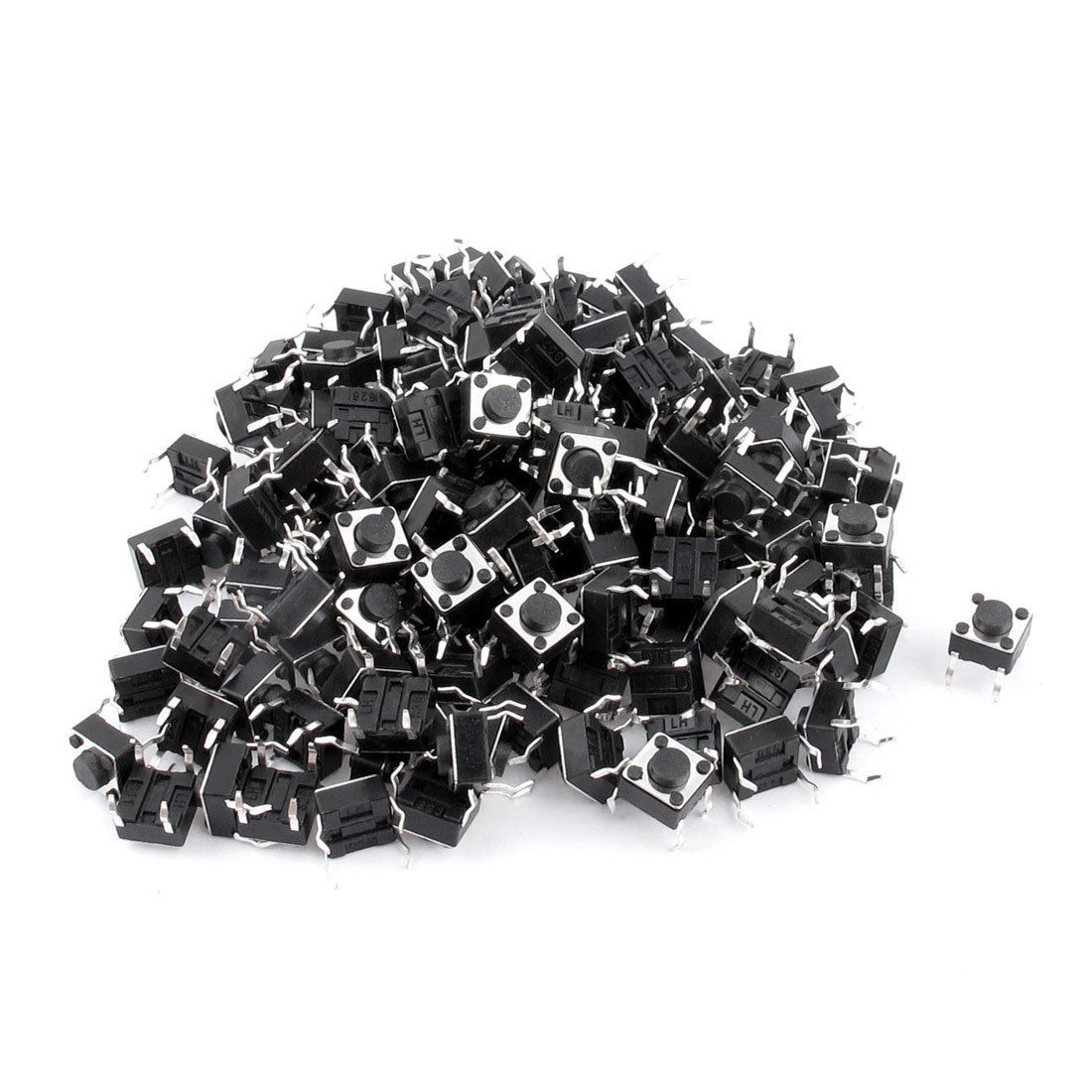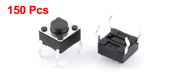 Details150Pcs Momentary 4-pin DIP Tact Tactile Push Button Switch 6x6x4.3mm  Main Color Black, Silver Tone Product Name Tactile Switch Brand DMiotech Net Weight 40g Action Type Momentary Country of Manufacture CHINA Package Content 150(+/-2%)pcs x Tactile Switch Material Metal, Plastic Button Size 3.5 x 1mm/0.14" x 0.04" (D*H) Total Size(Pin No Include) 6 x 6 x 4.3mm/0.24" x 0.24" x 0.17"(L*W*H)