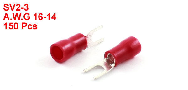 150PCS Red Insulated Furcate Fork Terminals Cable Lug AWG16-14 SV2-3