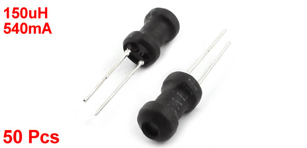 Product Name Radial Lead Inductor Inductance 150uH Rating Current 540mA Tolerance 10% Body Size 6 x 10mm / 0.24" x 0.4"(D*H) Pin Size 0.6 x 15mm/ 0.24" x 0.6"(D*L) Lead Distance 2mm / 0.08" Color Black, Silver Tone Weight 54g Package Content 50Pcs(±2%) x Radial Lead Inductor - Reviews