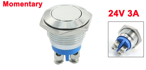Product Name Push Button Switch Contact Type SPST Rating Voltage 24V 3A Actuator Type Momentary Position 1NC Screw Terminal Number 2 Thread Dia 15.5mm / 5/8"" Button Dia 12mm / 0.47" Overall Size(Not Included Pin ) 24 x 19 x 22mm / 0.94" x 0.75" x 0.87" (L*W*H) Material Stainless Steel Color Silver Tone Weight 12g Package Content 1 x Push Button Switch - Reviews