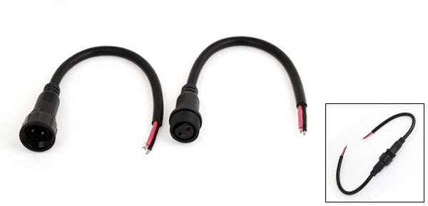 Product Name 2 Pin Waterproof Connector Way to Connect Male and Female Ends Push In Material (External) PVC Plastic Color Black Cable Outside Diameter 6mm / 15/64" Total Length (Connect) 40cm / 15.7" Weight 35g Package Content 1 x 2 Pin Waterproof Connector Cable - Reviews