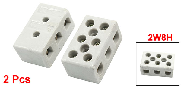 15A 2-Way 8 Hole White High Temperature Porcelain Terminal Block Connector 2PCS
