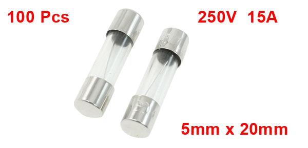 15A 250V 5mm x 20mm Fast Blow Glass Tube Fuses 100 Pieces
