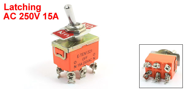 15A 250V AC ON/ON Double Position DPDT Latching Action Toggle Switch