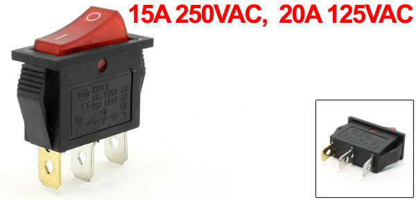 15A 250VAC 20A 125VAC 3 Pin SPST Red Light Pilot Lamp Rocker Switch
