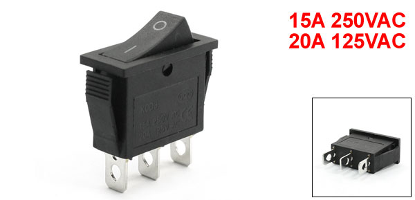 Product Name Rocker Switch Poles SPDT Terminals 3 Pins Position On/Off Two Position Rated Voltage 15A 250VAC, 20A 125VAC Overall Size 3.4 x 1.4 x 3.7cm / 1.3" x 0.6" x 1.5" (L*W*H) Mounting Size 2.8 x 1 x 3cm / 1.1" x 0.4" x 1.2" (L*W*H) Color Black, Silver Tone Material Plastic, Metal Weight 8g Package Content 1 x Rocker Switch - Reviews