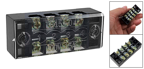Product Name Terminal Barrier Block Material Metal, Plastic Color Black, Green Rated Value 600V 15A Type 4 Positions, 2 Row Size 5.4 x 2.2 x 1.7cm /2.1'' x 0.9'' x 0.7'' (L*W*H) Weight 21g Package Content 1 x Terminal Barrier Block  - Reviews