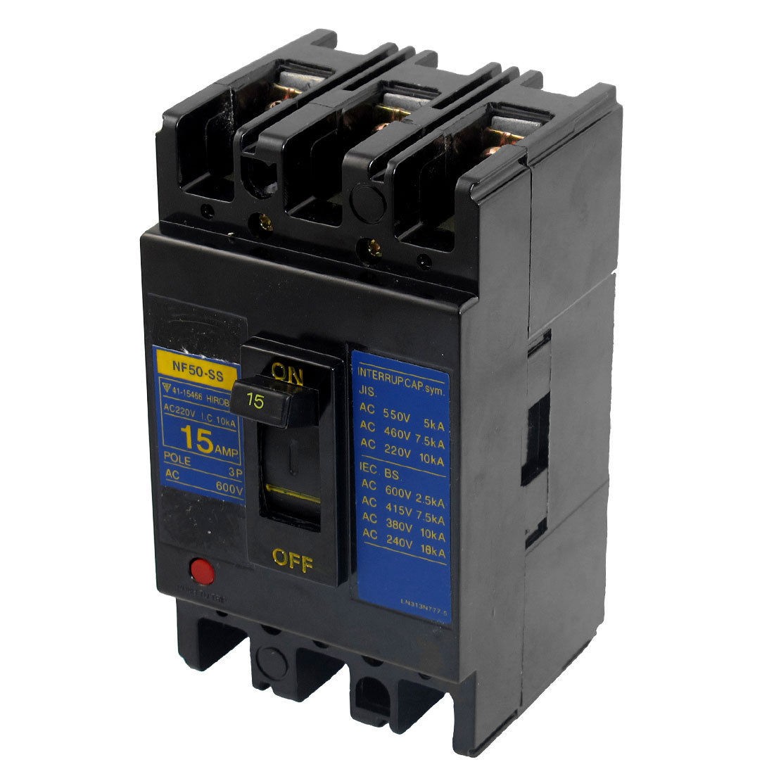 Product Name Moulded Case Circuit Breaker Model NF50-SP Pole 3 Frequency 50/60Hz Rated Current 15A Rated Voltage AC220V Rated Breaking Capacity 10kA Rated Insulation Voltage(Ui) AC600V JIS Voltage(Ue): 550VAC, 460VAC, 220VAC