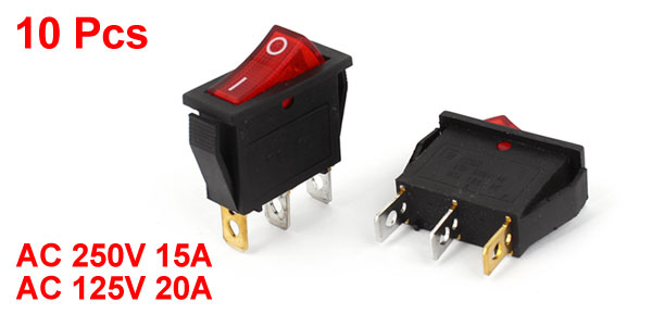 Product Name Rocker Switch Main Color Black,Red Net Weight 68g Rated AC 250V 15A, AC 125V 20A Terminals 3-Pin Country of Manufacture CHINA Package Content 10Pcs x Rocker Switch Type ON-OFF Material Plastic,Metal Total Size 38 x 35 x 12mm/1.5" x 1.4" x 0.5"(L*W*H) Mount Size 25 x 11mm/1" x 0.4"(L*W) - Reviews