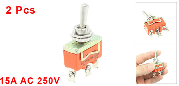 15A AC 250V ON/ON DPDT 2-Position 3-Terminals Toggle Switch 2 Pcs
