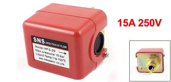 Product Name Pressure Switch Model NO. HFS-20 Max. Pressure 10Bar Contact Type SPDT Rating 15A 250V Liquid Temperature Range 1 to 100°C Thread Diameter 26mm Thread Size G3/4 Overall Size 12 x 8.5 x 6.5cm/ 4.7" x 3.35" x 2.6"(L*W*H) Color Red, Gold Tone Material Metal Net Weight 370g Package 1 x Pressure Switch