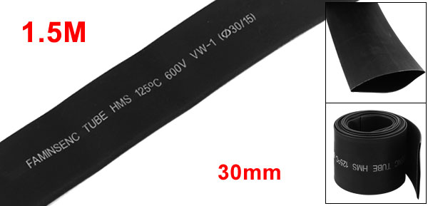 1.5M Long 30mm Dia Ratio 2:1 Heat Shrinking Shrinkable Tube Tubing Black