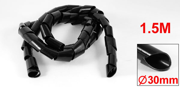 1.5Meter Long PE Polyethylene 30mm Spiral Cable Wire Wrap Tube Black