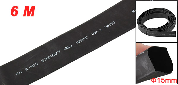 15mm Black Polyolefin Insulation Heat Shrink Tubing 6M 19.7ft