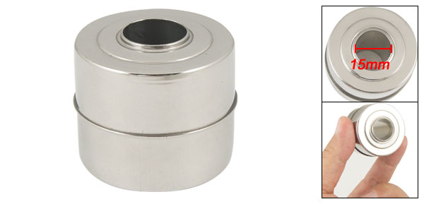 Product Name Floating Ball Material Stainless Steel Color Silver Tone Outside Diameter 40mm/ 1.57" Inside Diameter 15mm/ 0.59" Height 35mm/ 1.37" Net Weight 23g Package Content 1 x Float Switch Ball - Reviews
