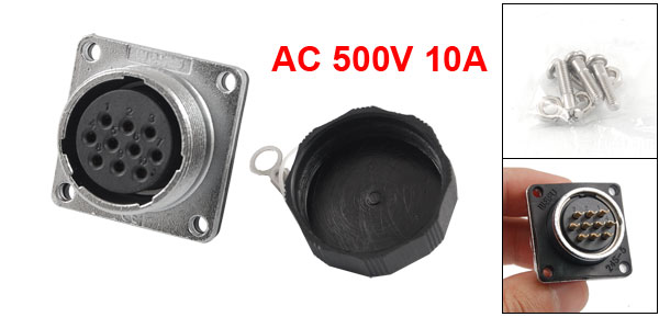 Product Name Aviation Connector Plug Model WS24-10 Contacts Pin Number 10 Contacts Pin Diameter 1.5mm Rated Voltage AC 500V Rated Current 10A Test Voltage(AC 1 min) 1500V Contact Resistance 2.5 Ohm Insulation Resistance 2000M Ohm Base Diameter 24mm/ 0.944" Thread Diameter 25.5mm/ 1" Panel Size 32 x 32 x 4mm/ 1.3" x 1.3" x 0.2"(L*W*T) Screw Hole Dia 3mm/ 0.118" Material Aluminum, Rubber Color Silver Tone, Black Weight 49g Package 1 x Aviation Connector Plug