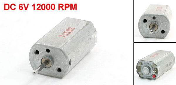 Details1.5mm Dia Shaft Electric Motor DC 6V 12000 RPM Speed for Audio  Product Name DC Motor Rated Voltage DC 6V Speed 12000 RPM Shaft Diameter 1.5mm/ 0.06" Size 41 x 15 x 12mm/ 1.6" x 0.6" x 0.47"(L*W*H) Main Color Silver Tone Material Metal Weight 18g Package 1 x DC Motor