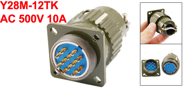 Product Name Circular Connector Model Y28M-12TK External Material Metal Pin Quantity 12 Working Voltage AC 500V Withstand Voltage AC 1500V Current 10A Contact Resistance 3 mOhm Insulation Resistance 500m Ohm Contact Diameter 1.5mm Hole Size 4.9 x 3.5mm/0.19" x 0.13"(L*W) Socket Thread Diameter 27.5mm/1.08" Install Screw Diameter 2.2mm Overall Size 6.5 x 3.7 x 3.7cm/2.6" x 1.4" x 1.4"(H*L*W) Color Army Green Net Weight 85g Package Content 1 x Circular Connector - Reviews