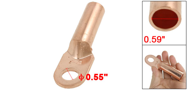 Product Name Copper Terminals Type Ring Tongue Type Tube Hole Diameter 15 x 19mm / 0.59" x 0.75" (Inside Dia.*Outter Dia.) Crimping Lug Hole Diameter 14mm / 0.55" Size 95 x 28mm / 3.7" x 1.1" (L*Max.W) Color Copper Tone Material Copper Weight 94g Package 1 x Copper Terminals - Reviews