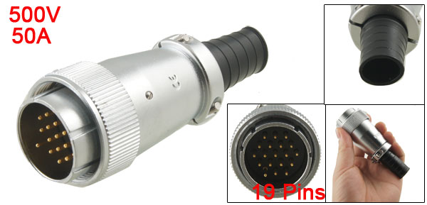 Product Name Aviation Connector Plug Model WS32-19 Contacts Pin Number 19 Contacts Pin Diameter Ø1.5 x 19 Working Voltage 500V Working Current 10A Withstand Voltage 1500V AC Contact Resistance 2.5MΩ Insulator Resistance 2000MΩ Housing Thread Diameter 32mm Rubber Inner Hole Diameter 14mm/ 0.55" Overall Size 40 x 102mm/ 1.6" x 4" (D*H) Material Aluminum, Rubber Color Silver Tone, Black Weight 144g Package 1 x Aviation Connector Plug  - Reviews