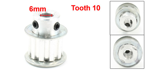 Product Name Timing Pulley Type XL10 Number of Tooth 10 Pitch 1.65mm/ 1/4'' Overall Size 19 x 22mm/0.74'' x0.86''(D*H) Bore Diameter 6mm/ 15/64" Fit Belt Width 11mm/0.43'' Material Aluminum Color Silver Tone Weight 9g Package Content 1 x Timing Pulley - Reviews