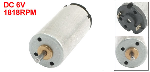 Product Name DC Motor Rated Voltage DC 6V Output Speed 1818RPM Shaft Diameter 1.5mm/ 0.06" Body Size 25 x 12mm/ 1" x 0.47"(L*D) Total Length 33mm/ 1.3" Pin Number 2 Material Metal, Electronic Parts Color Silver Tone Weight 11g Package Content 1 x DC Motor - Reviews