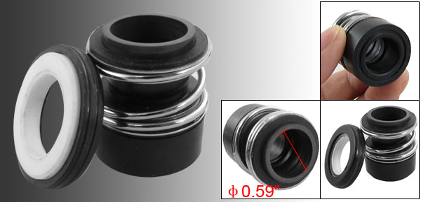 Details15mm Spring Rubber Coverd Mechanical Shaft Seal  Product Name Mechanical Seal Internal Diameter 15mm/0.59" Overall Size 27 x 37mm/1.06" x 1.45" (OD*H) Material Rubber, Metal, Carbon Color Black, Silver Tone Net Weight 26g Package Content 1 x Mechanical Shaft Seal