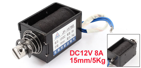Product Name Solenoid Electromagnet Rated Voltage & Current DC12V 8A Action Form Push Pull Type Stroke & Force 15mm/5Kg