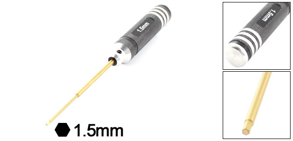Product Name Hex Screwdriver Hex Width 1.5mm/0.06" Shaft Size 85 x 3.5mm/3.3" x 0.13"(L*D) Total Length 175mm /7" Material Titanium Steel Main Color Black, Gold Tone Weight 40g Package Content 1 x Hex Screwdriver - Reviews