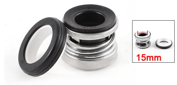 Product Name Mechanical Seal Internal Diameter 15mm / 0.59" Overall Size 27 x 21mm / 1.1" x 0.8" (Max.D*H) Material Rubber, Alloy, Metal, Ceramic Main Color Black, White, Silver Tone Net Weight 22g Package Content 1 x Mechanical Seal - Reviews