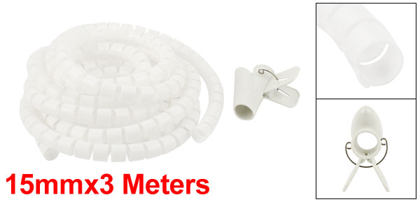 15mm x 3 Meter Spiral Wrapping Band Cable Organizer Wrap w Guide Tool Wire Clamp