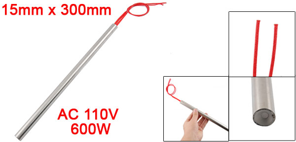 Product Name Cartridge Heater Material Stainless Steel, PVC, Nylon Rated Voltage AC 110V Power 600W Heater Size (Approx.) 15 x 300mm/0.6'' x11.8'' (D * L)