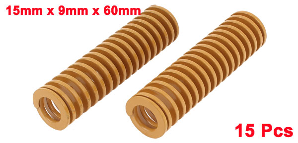 Product Name Mould Die Spring Material Metal Outside Diameter 15mm / 0.6" Inner Diameter 9mm / 0.35" Total Length 60mm / 1.8" Color Yellow Weight 395g Package Content 16 x Mould Die Spring - Reviews
