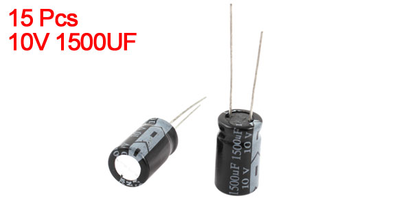Product Name Electrolytic Capacitor Type Radial Voltage 10V Capacitance 1500UF Body Size 10 x 17mm/0.39" x 0.67"(D*L) Lead Space 5mm/ 0.2" Lead Length 26mm/1", 20mm/0.79" Total Length 44mm/ 1.7" External Material Aluminum Total Net Weight 31g Main Color Black, Gray, Silver Tone Package Content 15PCS x Electrolytic Capacitors - Reviews