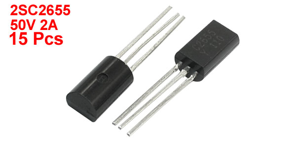 Product Name NPN Transistor Model 2SC2655 Package TO-92L Collector Base Voltage 50V Collector Current 2A Collector Power Max Dissipation 900mW Pin Size 14 x 1mm/0.55" x 0.04"(L*W) Body Dimension 4 x 4 x 3mm/ 0.16" x 0.16" x 0.12" (L*W*T) Weight 5g Package Content 15 Pcs x NPN Transistor - Reviews