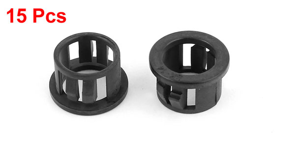 15pcs Black Round Cable Harness Protective Snap Bushing 15mm Panel Hole Dia